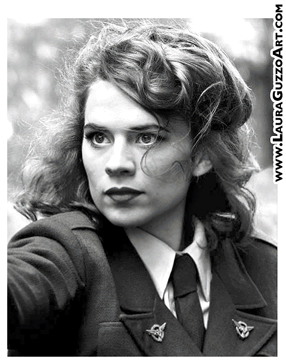 Portrait of actress Hayley Attwell, in her role as Agent Carter from the Captain America movies. Client: Private Collector Copic Marker and Colored Pencil March 2015